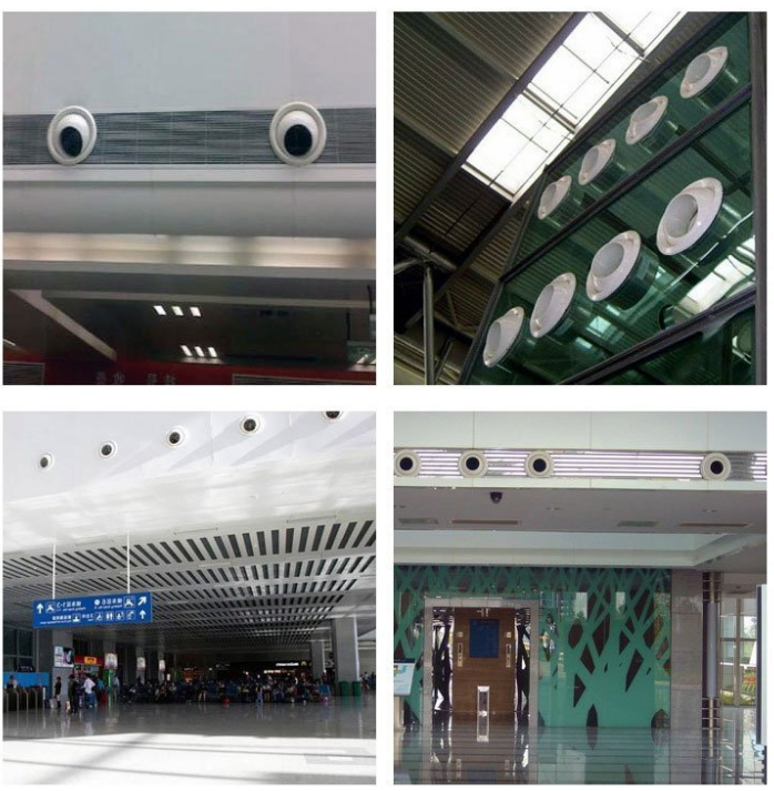 適用于高大層頂高速送風或局部供冷的場合,如機場候機大廳,室內體育場,賓館廚房等場合。